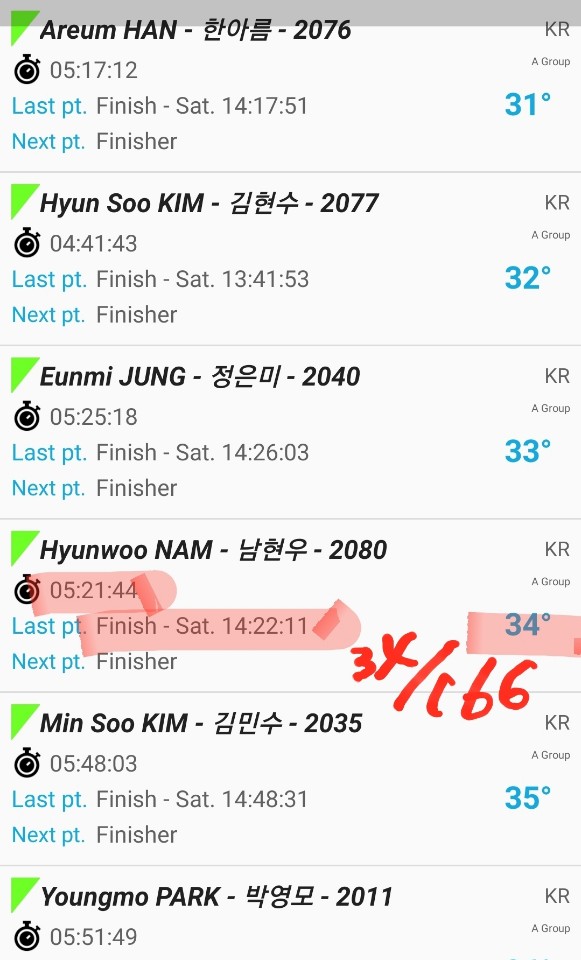 결국, 20분 페널티로 최종순위 44위/166명 (완주자142명)