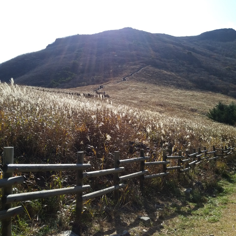 내려가면서 바라본 신불산정상쪽 억새밭
