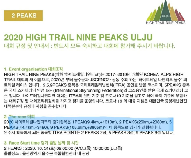 <2020 HIGH TRAIL NINE PEAKS ULJU>