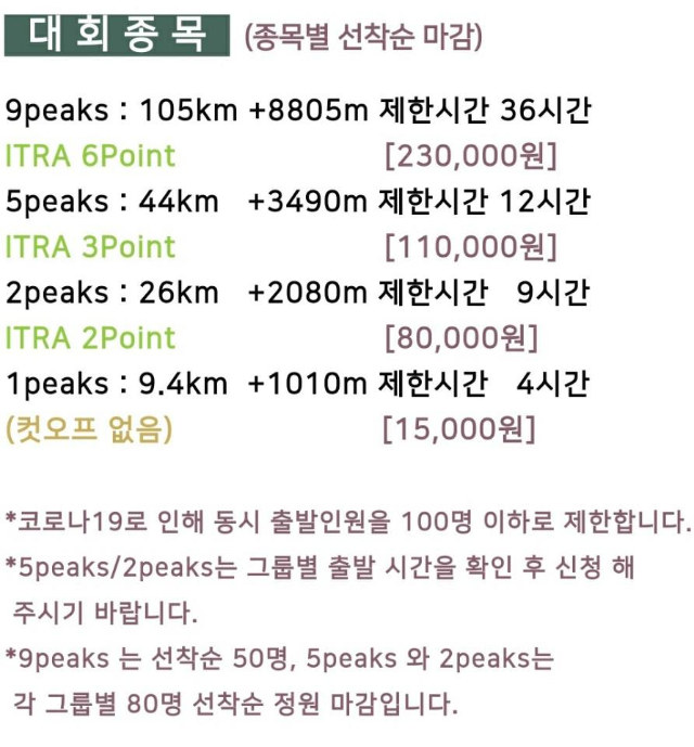 저는 2Peaks 26km, +2080m 제한시간 9시간 출전